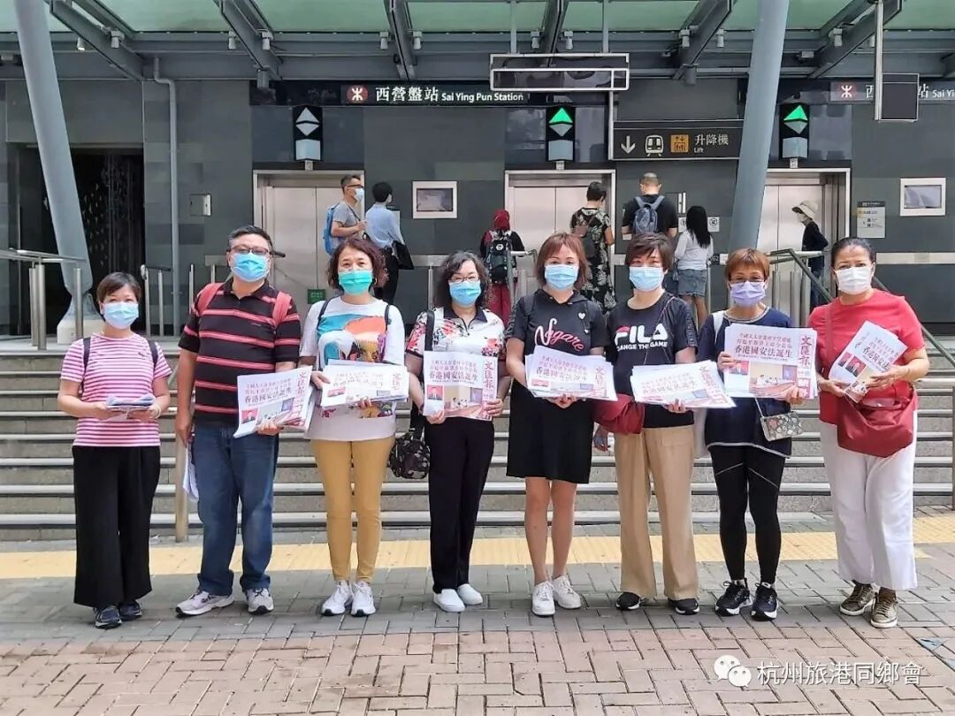 7月1日,本會義工陳曉菁、高忠紅、張詠琴、曹裕、張餘生、蔡明森、淩秀蓮、朱麗娥等懷著慶祝香港回歸以及宣傳國安法光榮任務的激動心情,和住在附近的莊錫年會合後,在港島西營盤地鐵站擺設街站。